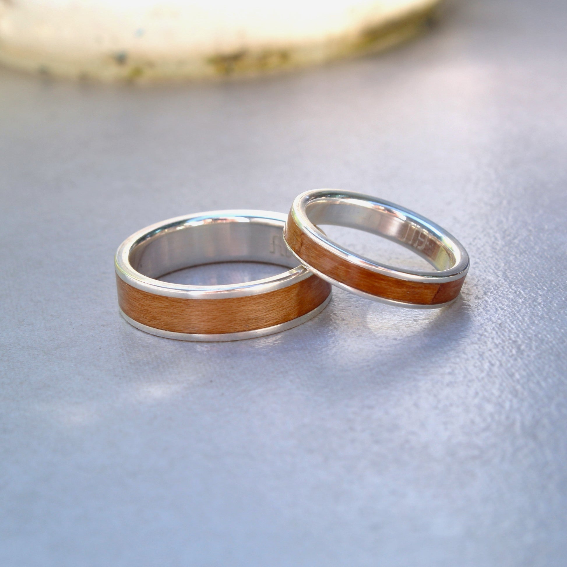 Use this ring set customizer to build your perfect ring set with the popular "Cosmopolitan" style. You can customize your wood and inlay position with this 6mm and 4mm set in silver.